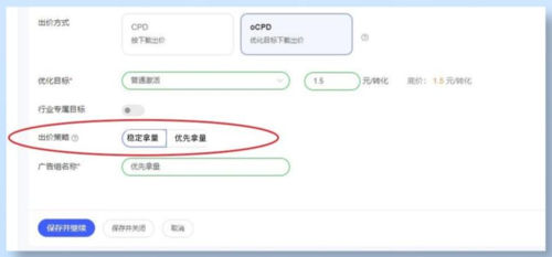 ①稳定拿量:保持量和成本的相对稳定,平台默认拿量策略。