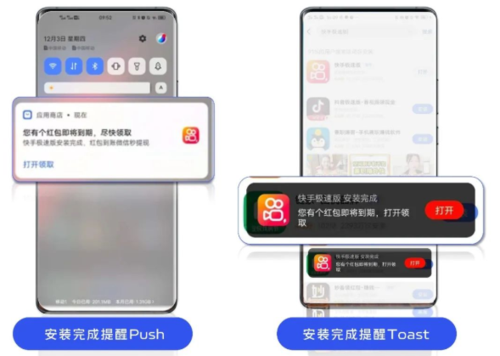 快手极速版APP使用vivo广告投放安装提醒Push与Toast弹窗功能,配合端内活动,加强用户感知,营造品牌调性,有效提升激活率,降低投放成本。