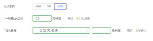 2.oCPC自定义注册:用户下载应用后,在应用内完成注册,则计入一次转化。(支持过渡阶段出价)在信息流或联盟场景下投放单出价的广告主均可使用。