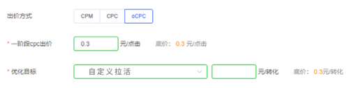 1.oCPC自定义激活:针对应用下载类目标,用户下载应用后,在应用内完成激活,则计入一次转化。在信息流或联盟场景下投放单出价的广告主均可使用。