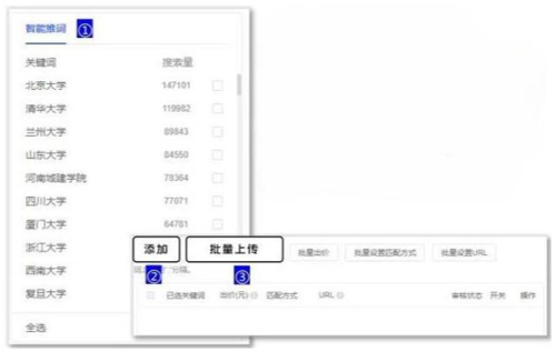 ①目前仅支持CPC出价形式,可对关键词单独或批量设置出价
