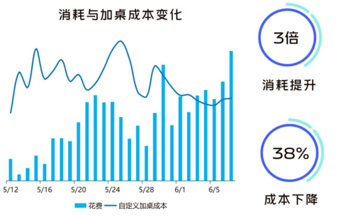 H5形式与HAP链接直投进行多维投放对比,观察在两种链路下的加桌成本变化,择优选择更优链路投放。